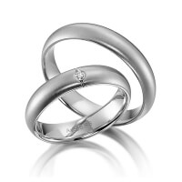 Set trouwringen van acredo in witgoud 14 kt. Oppervlakte: Overdwars mat met in totaal 0,03 ct. Briljant tw/si (Product 1 met steenzetting Product 2 zonder steenzetting)