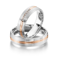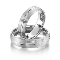 Set trouwringen van acredo in witgoud 14 kt. Oppervlakte: gematteerd , gepolijst met in totaal 0,056 ct. Briljant tw/si (Product 1 met steenzetting Product 2 zonder steenzetting)