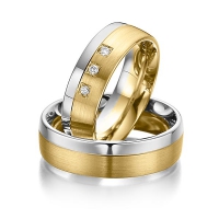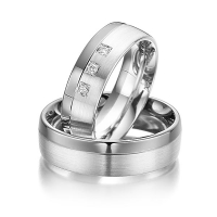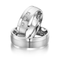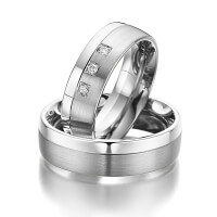 Set trouwringen van Steinberg in witgoud 14 kt. Oppervlakte: gepolijst, gematteerd met in totaal 0,06 ct. Briljant tw/si (Product 1 met steenzetting Product 2 zonder steenzetting)