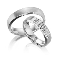Set trouwringen van Steinberg in witgoud 14 kt. Oppervlakte: gematteerd met in totaal 0,3 ct. Briljant tw/si (Product 1 met steenzetting Product 2 zonder steenzetting)