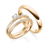 Tri-Set van acredo in roodgoud 14 kt. met 0,3 ct. + in totaal 0,28 ct. Briljanten & Briljant tw/si